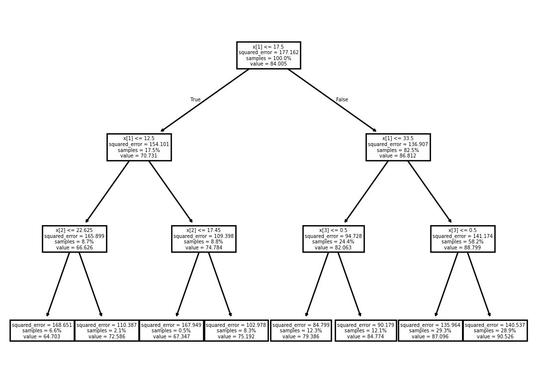 The predictions look very discrete, because we only allowed the tree to be split into eight categories.