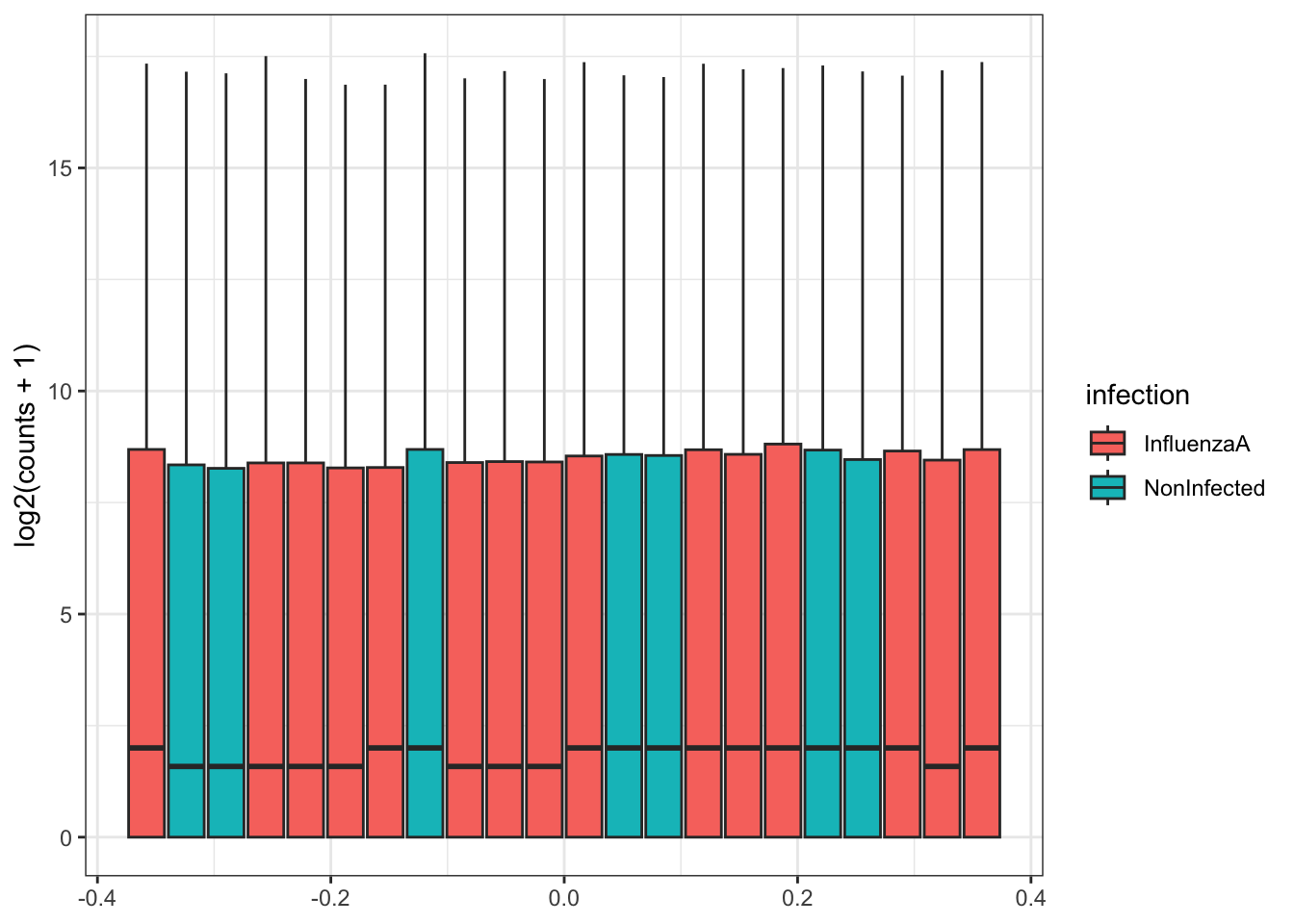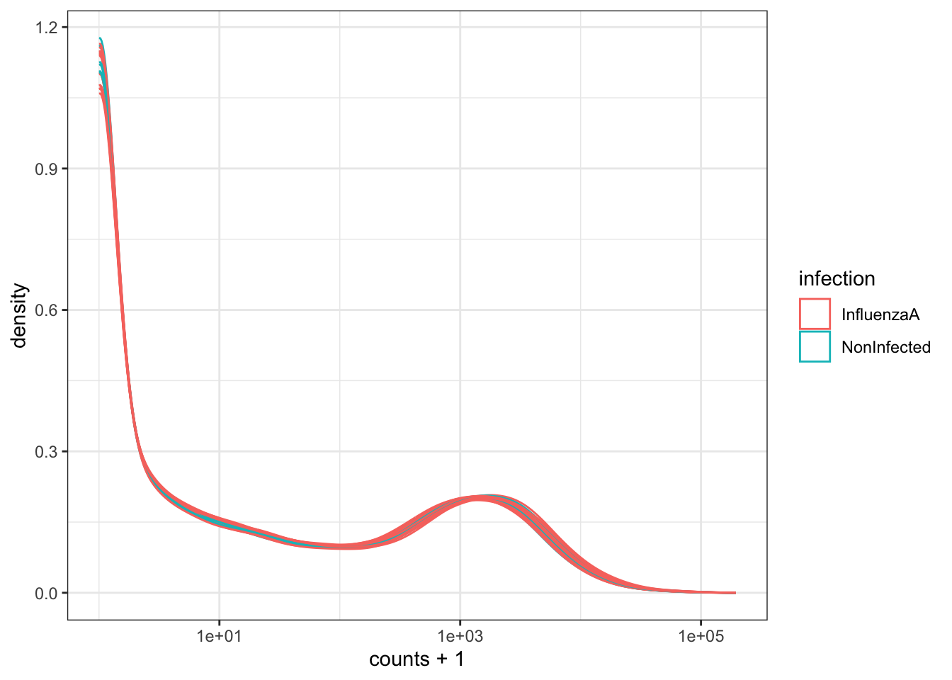 Our data (individual gene counts) is highly skewed. If we log-transform the data, then the skew is lessened. The boxplots of log counts are helpful for detecting batch effects.
